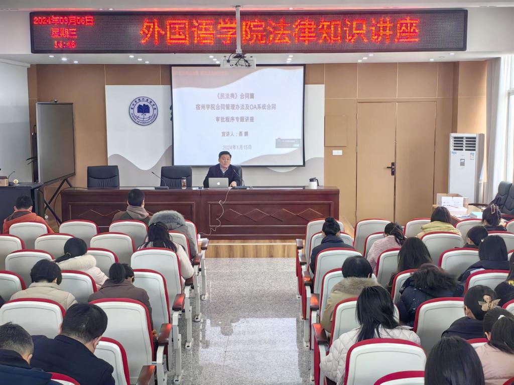 为提高教职工法治意识和合同管理水平,明确合同审核程序,规避合同中的法律风险。2024年3月6日,外国语学院邀请校办公室法治科科长聂鹏老师作了题为“依法签订合同,有效规避法律风险”的专题讲座。外国语学院全体教职工参加专题讲座。讲座由院党委副书记、纪委书记张亚锋主持。