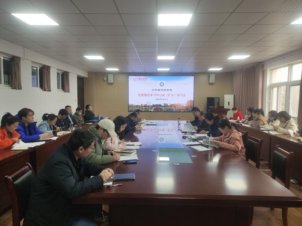 3月13日下午,文学与传媒学院在教A303召开党委理论学习中心组(扩大)学习会,专题学习“两会”精神,学院领导班子成员、科级干部、党委委员、党支部书记及相关管理人员参加学习会,学习会由学院党委书记王金岭主持。