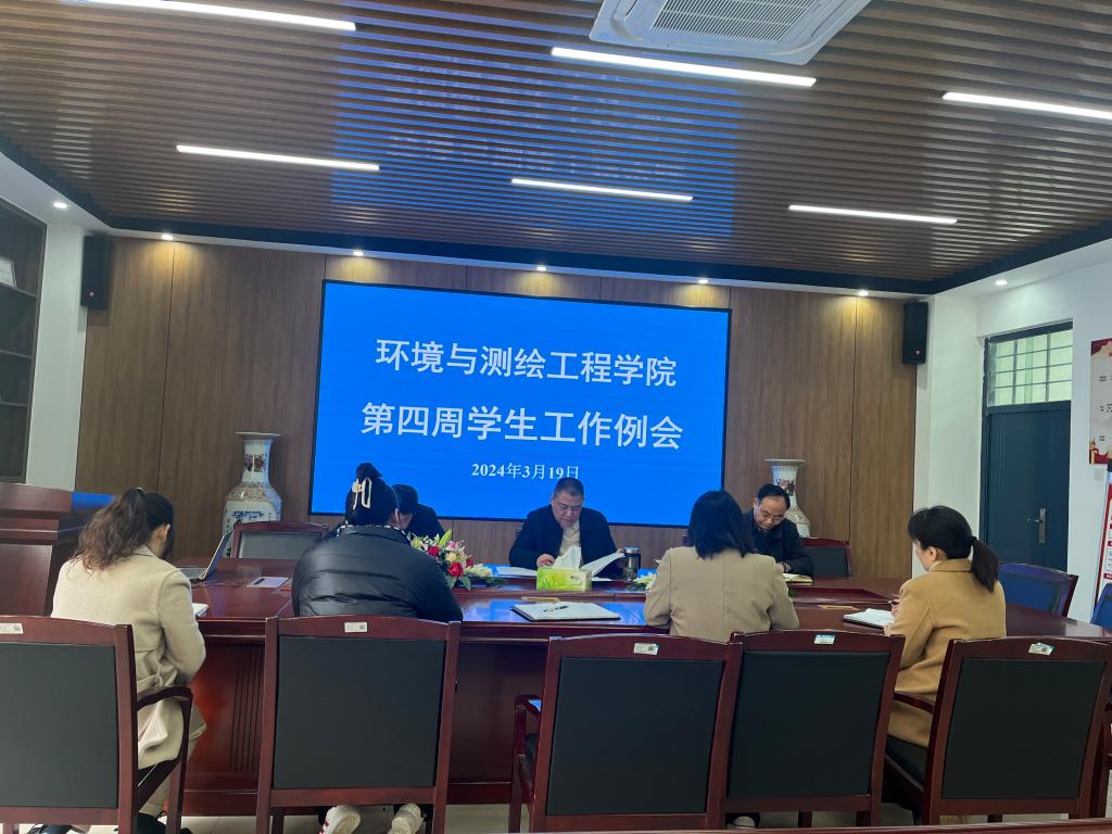 3月19日上午,环测学院在工A318会议室召开第四周学生工作例会暨就业工作推进会。环测学院党委书记胡冰,党委副书记、纪委书记李建新,教学副院长徐国伟及辅导员参加会议。