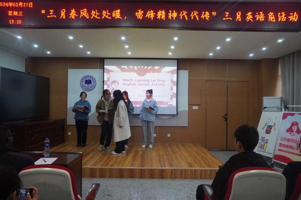 为加强英语交流,深入学习和传承雷锋精神,外国语学院于3月27日联合环测学院在逸夫楼一楼会议室举办主题为“三月春风处处暖,雷锋精神代代传”英语角活动,外国语学院分团委书记赵婷婷、环测学院分团委书记杨雯和外籍教师Thierry应邀参加。