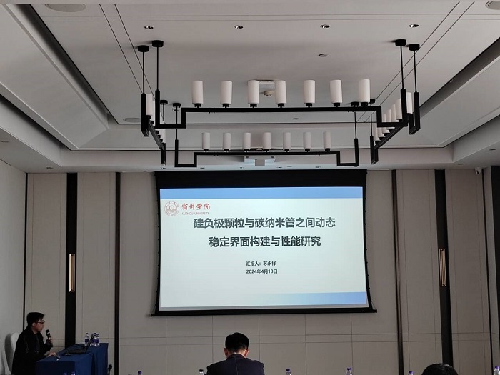 大会报告阶段,澳大利亚蒙纳士大学余艾冰院士、福州大学张久俊院士等专家学者做了主会场报告。大赢家体育化学化工学院苏永祥博士做了题为《硅负极颗粒与碳纳米管之间动态稳定界面构建与性能研究》的报告。与会人员就相关问题进行了交流和讨论。