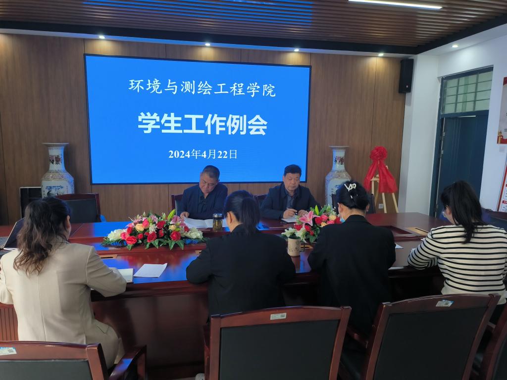 4月22日,环测学院在工A315会议室召开第九周学生工作例会。环测学院党委书记胡冰,党委副书记、纪委书记李建新及辅导员参加会议。