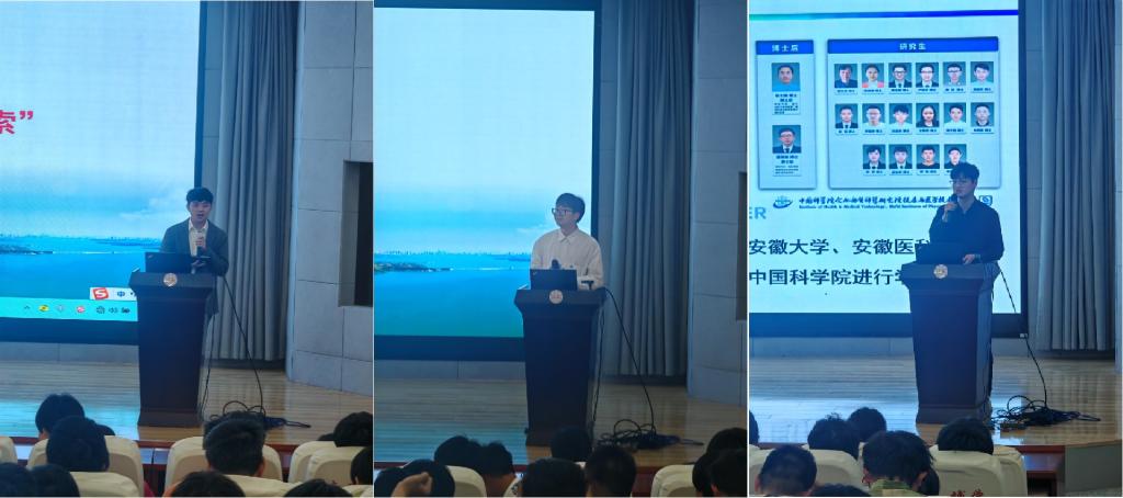 杨良保团队的博士硕士分别作了5场精彩报告。谢涛博士以十载求学的心路历程为蓝本作了“从“小”本科到“大”博士的十年”的主题报告,通过自身学习经验为引子向在座师生生动得描述了从本科到博士的学习生活。朱明瑞硕士以自身读研、求职经验向大家作了“研究生备考及就业分享”的报告,为同学们详细分享了考研期间的学习方法和求职的心路历程。洪岩硕士以自身的研究生求学经历作了“相信自己”的报告,通过分享硕士期间承担的“智能仓储”项目和参加“挑战杯”创业大赛的经历提醒同学们无论是工作还是学习,都要抓住机会,勇于展现自己。孟志材硕士以研究生期间的自身兴趣作了“打造实用技能——如何进行高效搜索”的报告,与学生分享如何使用搜索工具提高学习效率,鼓励同学们在平时多学习一些实用技能。严伍文博士以博士学习经历作了“透视科研,触摸自我:博士生活分享”的主题报告,通过分享自己的科研经历,鼓励同学们先了解自己的专业和特长,然后以平和的心态,坚持的态度对待每一件事。