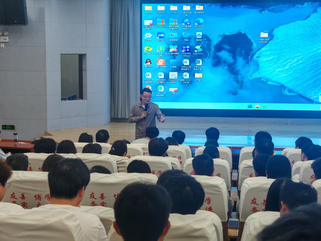为深化专创融合改革、弘扬双创精神、营造双创氛围、提高双创技能,4月25日化学化工学院邀请中科院合肥物质科学研究院杨良保研究员携博士硕士团队来我校进行“五育大讲堂——筑梦未来之路,做好学业、就业人生规划”交流分享。报告会由化学化工学院党委副书记、院长卓馨主持,化学化工学院副院长王聪、教务处创新创业教育办公室赵军老师、200余名学生参加此次报告会。