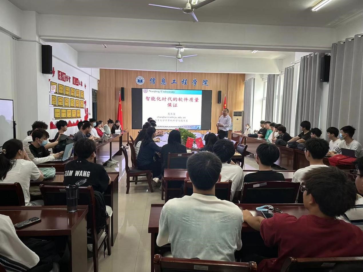 应信息工程学院的邀请,南京大学计算机科学与技术系聂长海教授于2024年5月13日,为信息工程学院师生作了题为“智能化时代的软件质量保证”的学术讲座。讲座由信息工程学院科研副院长崔琳主持,信息工程学院教师和学生聆听了讲座。