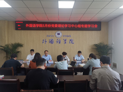 5月13日下午,外国语学院在逸夫楼A318会议室召开党委理论学习中心组专题学习会,学院党委委员和支部书记参加,会议由党委书记郝景东主持。