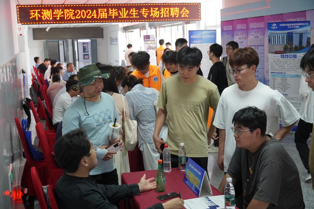 为帮助2024届毕业生落实就业去向,5月18日上午,环测学院在教育园区工科楼一楼举办2024届毕业生专场招聘会,招就处副处长李金莲来到招聘会现场指导毕业生就业工作。环测学院党委书记胡冰,党委副书记、院长张海洋,党委副书记、纪委书记李建新,毕业班辅导员,2024届毕业生参会。