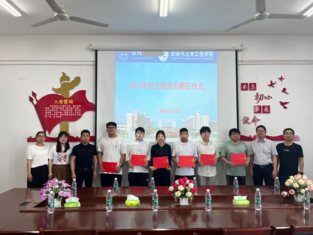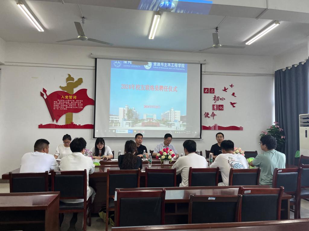为加强校友与母校的联系,更好地服务校友、服务母校,促进学校和校友事业的共同发展,5月22日,资源与土木工程学院2024届校友联络员聘任仪式在工A402会议室举行。学院党委书记张持堂出席聘任仪式,毕业班辅导员以及学院毕业班校友联络员参会,会议由学院党委副书记徐国庆主持。