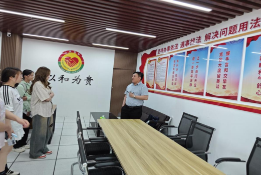 培训会结束后,聂鹏带领商学院首批学生调解员参观了商学院座谈(调解)室,并进行了深入交流。