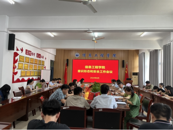 2024年6月12日,信息工程学院在工B315会议室召开意识形态和安全工作会议。会议由信息工程学院党委书记余晓永主持,信息工程学院全体教职工参加会议。