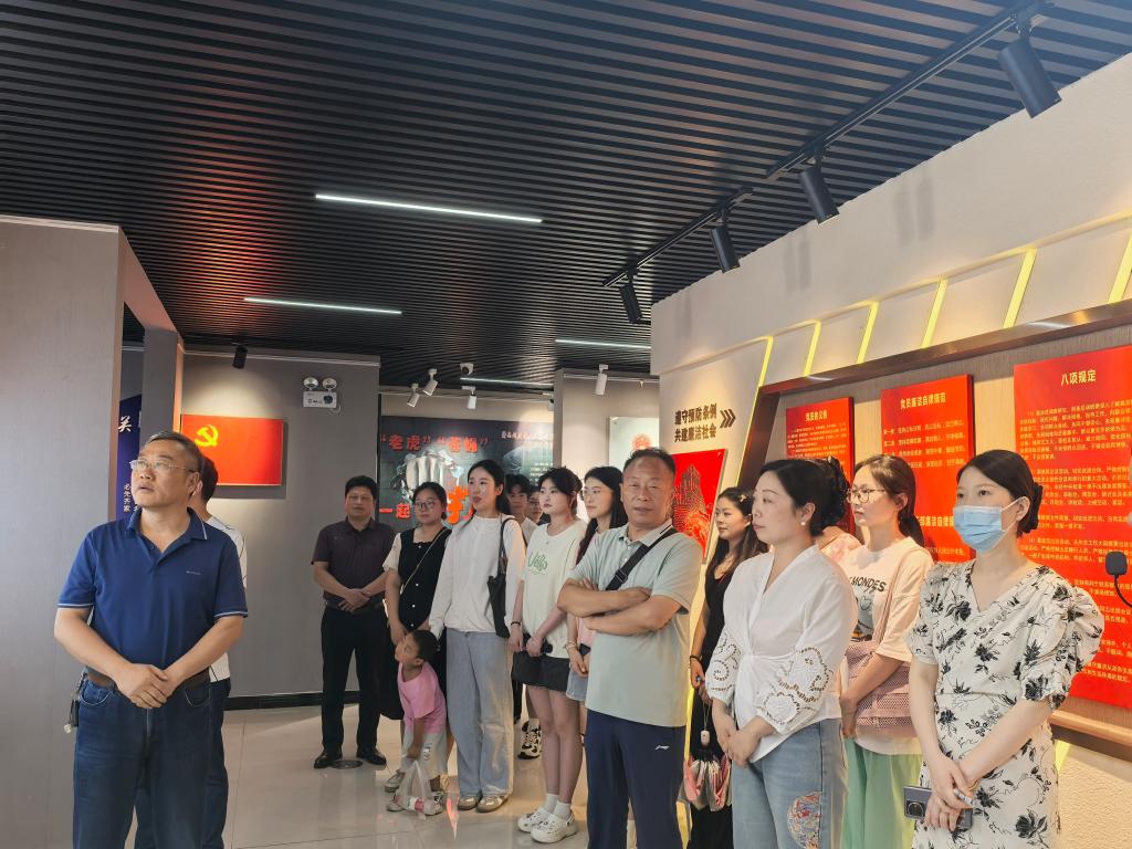 在工作人员的引导和讲解下,党员们先后参观了廉洁大厅、警示篇、法纪篇、忏悔篇、尚廉篇和决策篇等六大板块内容。展厅内展示了一系列典型案例,通过真实的图片、文字和视频资料,深刻剖析了腐败现象的根源和危害。这些案例为党员们敲响了拒腐防变、正风肃纪的警钟,同时也让他们更加清醒地认识到廉洁自律的重要性。最后,全体党员面对党旗重温入党誓词。