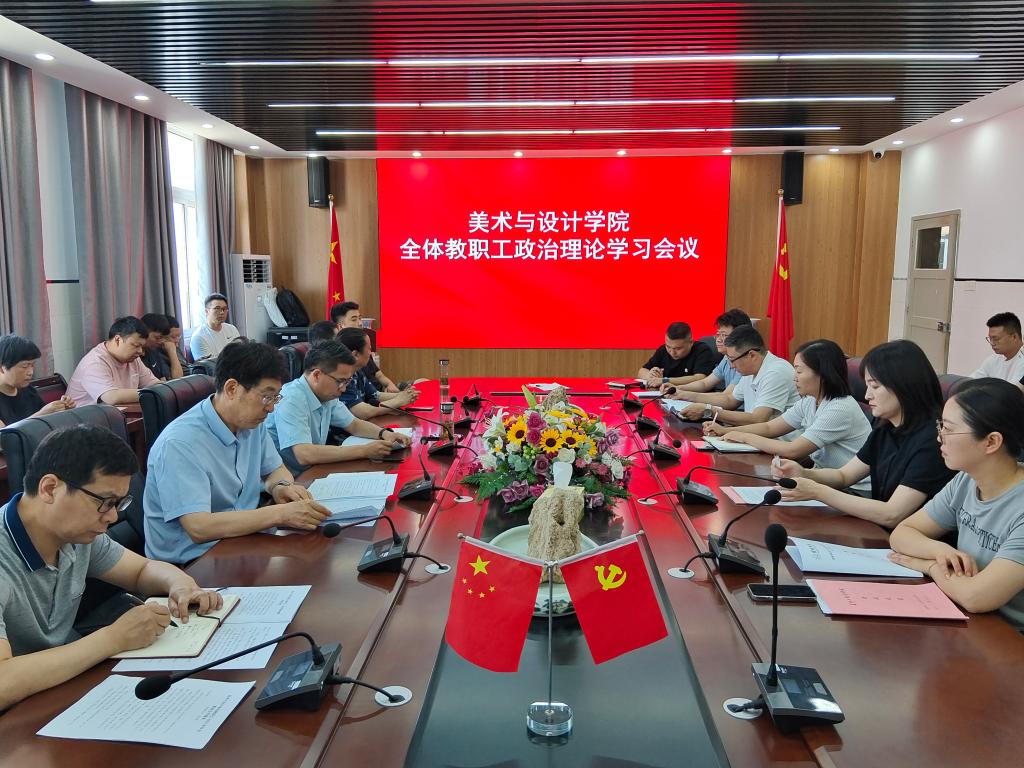 6月28日,美术与设计学院在艺术楼会议室召开全体教职工政治理论学习会议,会议由院党委书记陈述立主持。