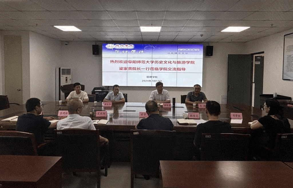 7月17日上午,阜阳师范大学历史文化与旅游学院院长梁家贵一行到管理学院调研交流,校学工部主要负责人、管理学院领导班子及相关人员参加交流座谈会。会议由管理学院党委副书记、院长韩传龙主持。