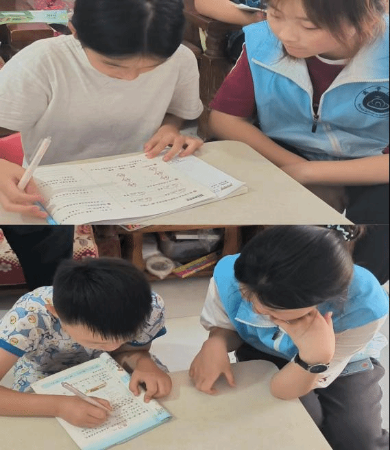 随后,实践团队成员分成两组,分别开展志愿服务和走访村委会活动。志愿者为当地的小朋友们开展学业辅导服务,并为当地的小朋友们送上精心准备的学习用品。走访村委会活动中,团队成员根据前期的调研情况,与村干部进行了交流。