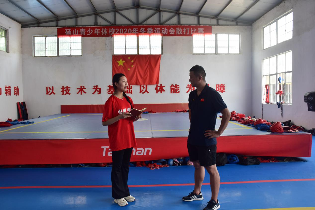 团队一行首先来到砀山县砀城镇徐井村刚峰文武学校,学校负责人王永利老师热情接待了团队成员,经过介绍了解到:砀山县刚锋文武学校,该始创于2001年,开设武术套路、散打、拳击、摔跤、跆拳道、柔道等运动项目,共计15支训练队,在校学生700余名。该校已被授予多项荣誉称号,包括“国家级青少年体育俱乐部”“体育传统项目学校”“全民健身活动先进单位”等。在对王老师的采访中了解到学校在体育训练的同时也非常重视文化教学,学校将文化课和体育训练有机地结合起来,通过举办文化活动和体育赛事等形式,促进学生之间的交流与合作。王老师表示这就是刚峰文武学校的理念,即“以文为主,以武睿智”。