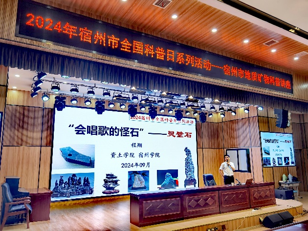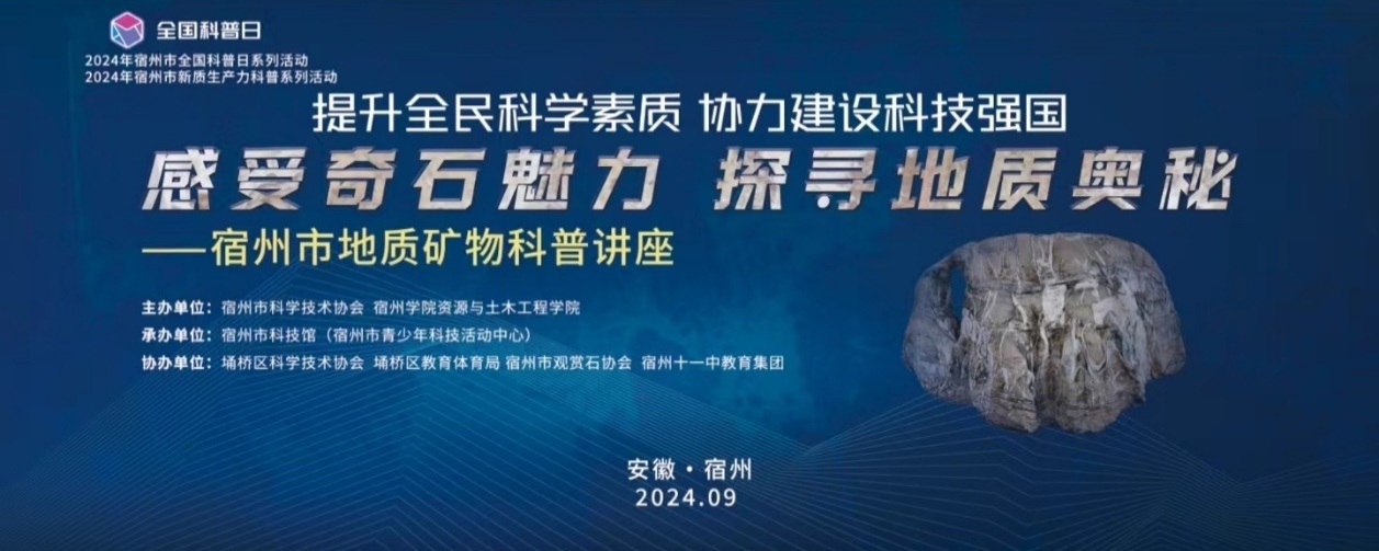 为提升全民科学素质,协力建设科技强国,宿州市科学技术协会和大赢家体育资源与土木工程学院联合开展2024年宿州市全国科普日系列活动。9月29日,资源与土木工程学院副院长王明梁教授和程翔博士赴宿州十一中教育集团银河四路校区,为该校八年级的全体学生开展以“感受奇石魅力,探寻地质奥秘”为主题的地质矿物科普讲座。