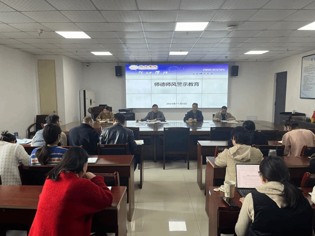 为加强学院师德师风建设,提升教师队伍的整体素质,2024年11月6日,管理学院在教育园区实训楼C301召开师德师风警示教育专题会议。党委副书记、院长韩传龙,正处级组织员张持堂,党委副书记张增林,副院长宋徽及全院教师参加,会议由张增林主持。