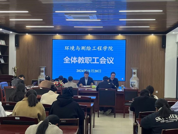 2024年11月20日下午,环测学院在工科楼A315召开全体教职工会议暨安全工作专题会议,学院党委副书记、院长张海洋,党委副书记、纪委书记李建新,副院长李琦及全体教职工参加会议,会议由张海洋主持。