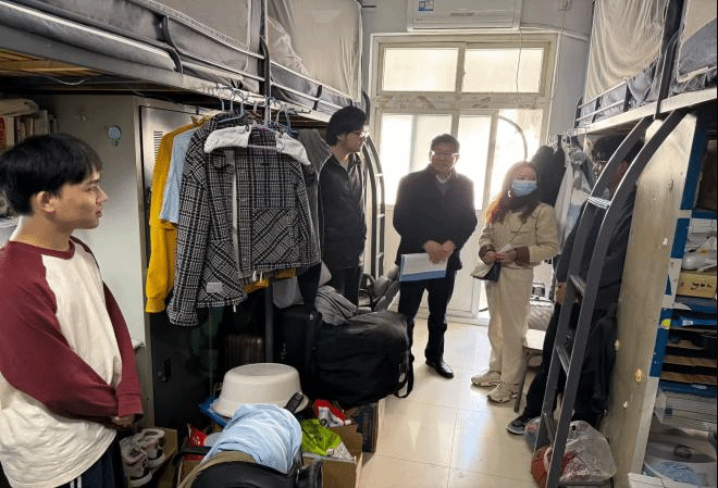 11月22日,机械与电子工程学院集中开展走访学生宿舍专项活动,全面排查宿舍安全隐患,面对面提供学习、就业、交往等指导服务,强化思政教育的针对性实效性。院党委书记黄凯、副书记王艳,以及全体辅导员共同参加了本次活动。