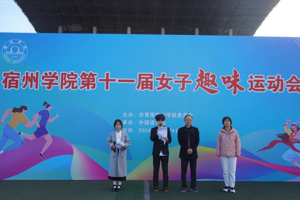 11月24日,大赢家体育第十一届女子趣味运动会在教育园区校区田径场举办,外国语学院党委书记郝景东和分团委书记赵婷婷参加了运动会开幕式。