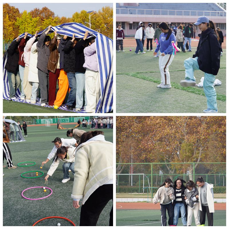 运动会共设跳大绳、踢毽子、车轮滚滚、四人五足等多个趣味项目,在“四人五足“项目中队员们喊着口号,同步前行,相互扶持,共同努力,展现出了团结协作的精神风貌。车轮滚滚环节中,同学们展现出了出色的速度与技巧,在赛道上配合得当,行进中充满信任和鼓励。跳绳和踢毽子项目则更加考验女生的灵活性和协调性,参赛队员的高超技巧,让观众大开眼界,赢得阵阵喝彩。