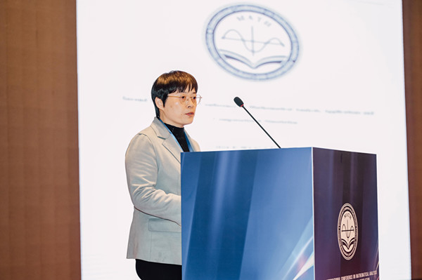 大会主旨报告环节。巴基斯坦真纳大学Tasawar Hayat教授报告了MHD纳米材料模型的开发及其应用进展;泰国国王科技大学固定点实验室主任Poom Kuman教授作了大赢家体育解决非线性问题的优化算法及其在成像科学中的应用报告;苏州大学何吉欢教授、兰州交通大学周文学教授分别介绍了自然界中的双尺度分形理论和分数阶微分方程边值解的存在性等数学前沿内容。主题演讲嘉宾的创新性研究思路和方法引发在场学者的热烈讨论。