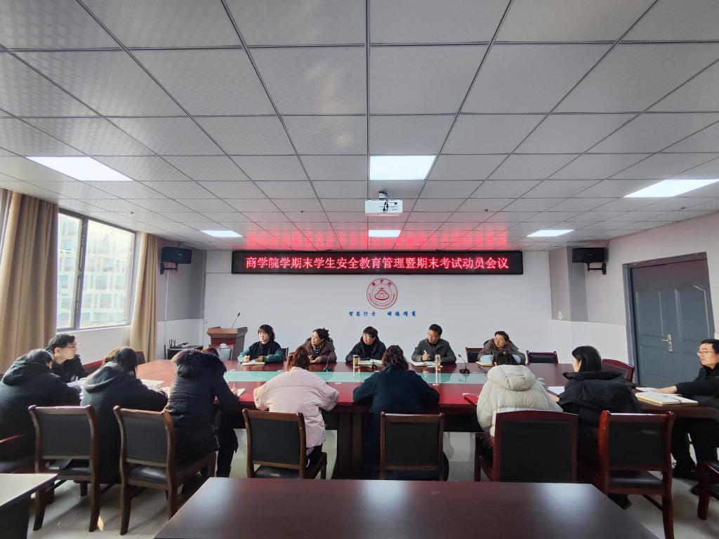 为进一步做好期末各项学生管理工作,12月13日上午,商学院在实训楼B517会议室召开期末学生安全教育管理暨期末考试动员会。院党委书记王淑霞主持会议,党委副书记、院长刘红军,副院长宁青青,副院长张冰秋,党委副书记、纪委书记张锐锐、科级干部以及全体专职辅导员参加会议。