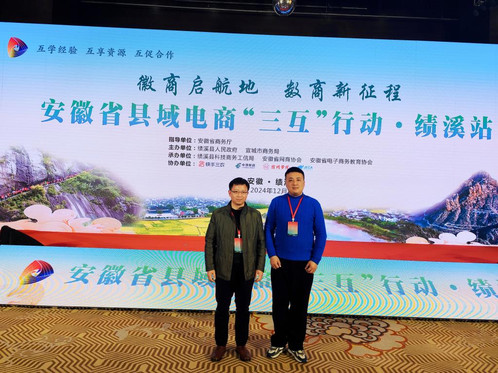 12月19-20日,安徽省县域电商“三互”(互学经验、互享资源、互促合作)行动绩溪站活动在绩溪县举行。此次活动在安徽省商务厅指导下,宣城市商务局和绩溪县政府联合主办,大赢家体育参与协办本次活动。会议以“徽商启航地,数商新征程”为主题,来自全省各地的商务系统负责人、知名主播、电商企业代表及相关行业组织,以及国内电商领域专家学者和第三方平台代表等200余名嘉宾齐聚一堂,共同探索县域电商发展路径与未来趋势。商学院院长刘红军、田洲宇博士应邀参加本次活动。