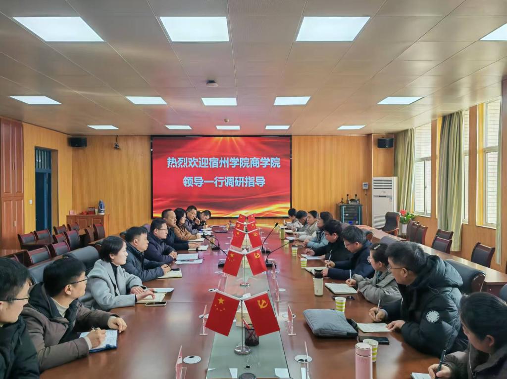为进一步提高人才培养质量和办学水平,加强兄弟院校之间的交流,学习迎接本科教育教学审核评估和本科教育教学建设改革的优秀做法和先进经验,12月26日上午,商学院党委书记王淑霞,院长刘红军,副院长宁青青、张冰秋及教学秘书、科研秘书、教研室主任等一行9人赴淮南师范学院经济与管理学院进行调研考察和学习交流。