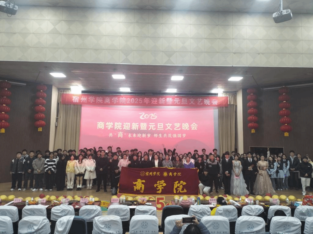 旧岁将辞,新年共启。2024年12月30日晚,商学院在大学生活动中心举办2025年“共‘商’未来迎新岁 师生共筑强国梦”主题迎新暨元旦文艺晚会。商学院党委书记王淑霞,党委副书记、院长刘红军,党委副书记、纪委书记张锐锐,副院长宁青青、张冰秋,学院全体辅导员及教师代表和全体2024级新生齐聚一堂,共启新年。
