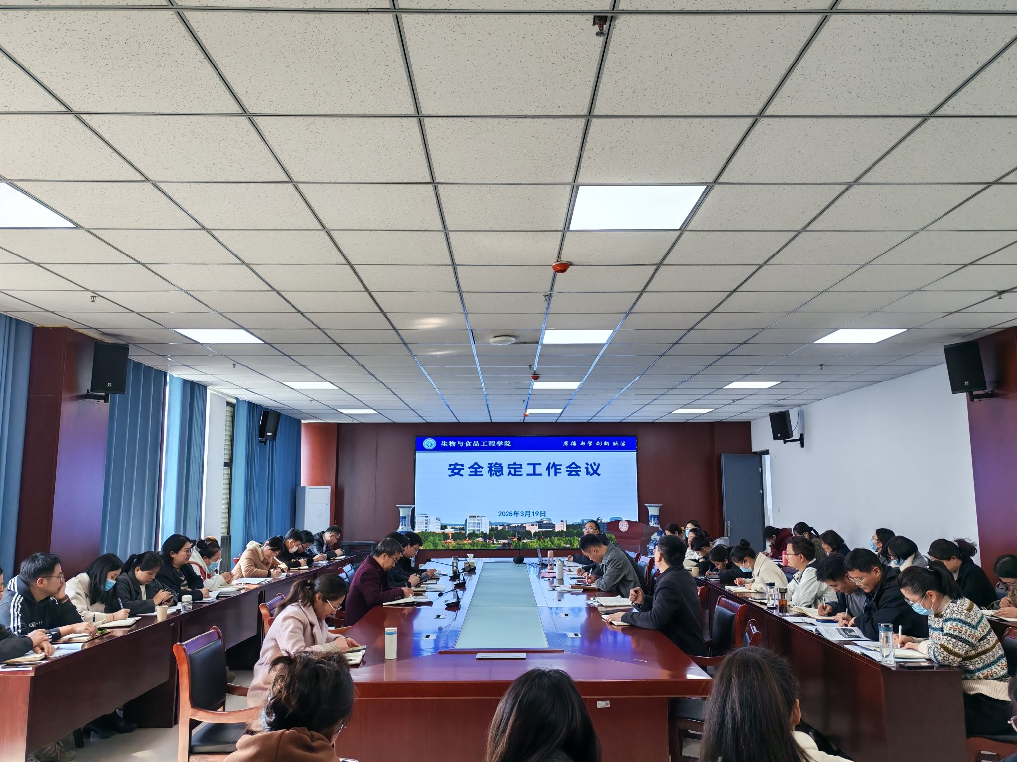 为做好安全稳定工作,2025年3月19日下午,生工学院在会议室1105召开安全稳定工作会议。生工学院党委书记刘超、党委副书记、院长张兴桃、副院长王海潮,副院长翟科峰,党委副书记、纪委书记李娜及全体教职工参加了本次会议。