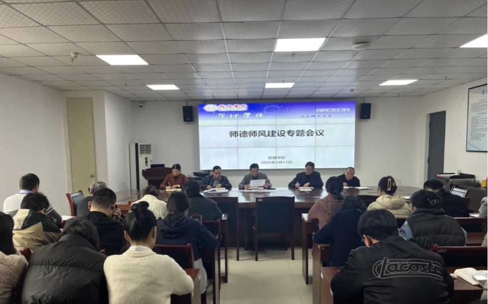 3月12日,管理学院在教育园区实训楼C301召开师德师风建设专题会。院党委副书记、院长韩传龙,正处级组织员张持堂,副院长宋徽,副院长周冲及学院全体教师参加,会议由院党委副书记、纪委书记张增林主持。