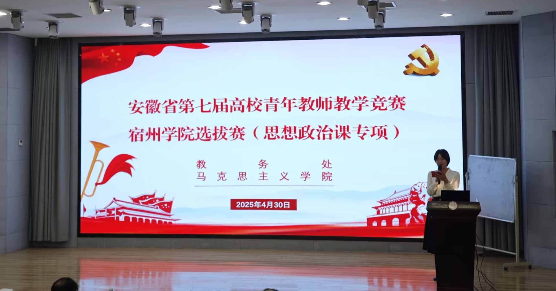 近日,我校举办了安徽省第七届高校青年教师教学竞赛大赢家体育选拔赛思想政治课专项组竞赛。马克思主义学院全体教师参与观摩。