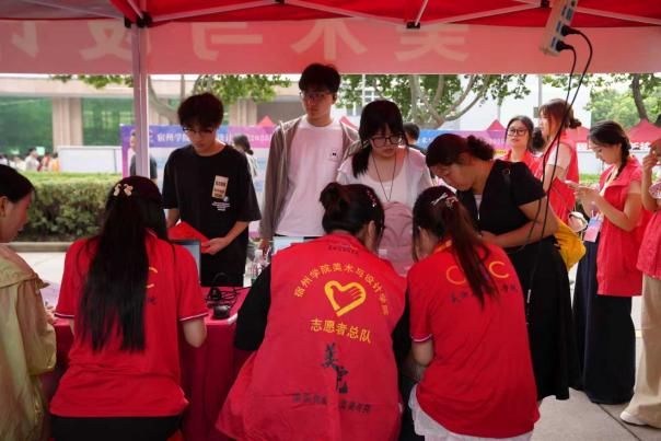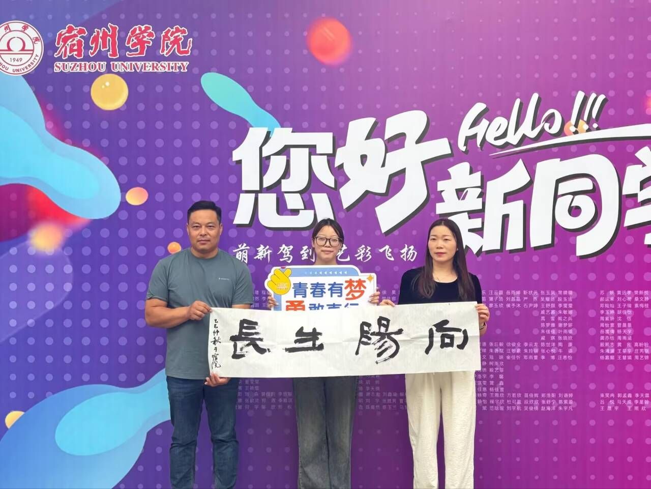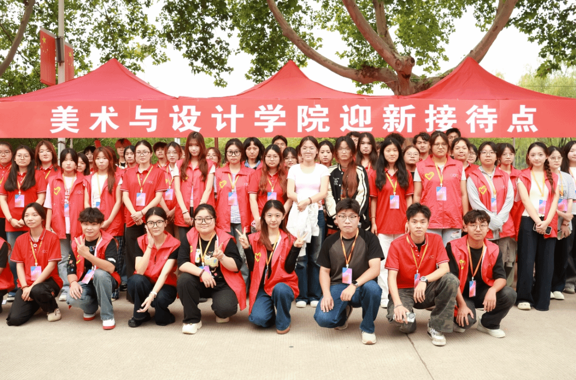 色彩鲜艳、设计精美的迎新展板前吸引着新生和家长纷纷驻足观看。新生们兴奋地在展板前拍照打卡,记录下这难忘的时刻。一张张充满朝气的笑脸,定格了他们对大学生活的美好憧憬和期待。这些照片不仅将成为他们青春记忆中的珍贵瞬间,也将见证他们在美术与设计学院开启的艺术之旅。迎新现场还特别设置了“惊喜盲盒”,为学生送去书法作品及国画团扇,传递美好祝愿与艺术温度。