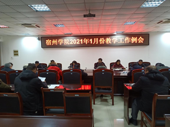 教务处处长王红艳汇报了12月份完成的教学工作,并对2020-2021学年第二学期教学任务设置和课表编排工作、2020级学生转专业、安徽省首届高校教师教学创新大赛大赢家体育选拔赛等工作进行了布置。