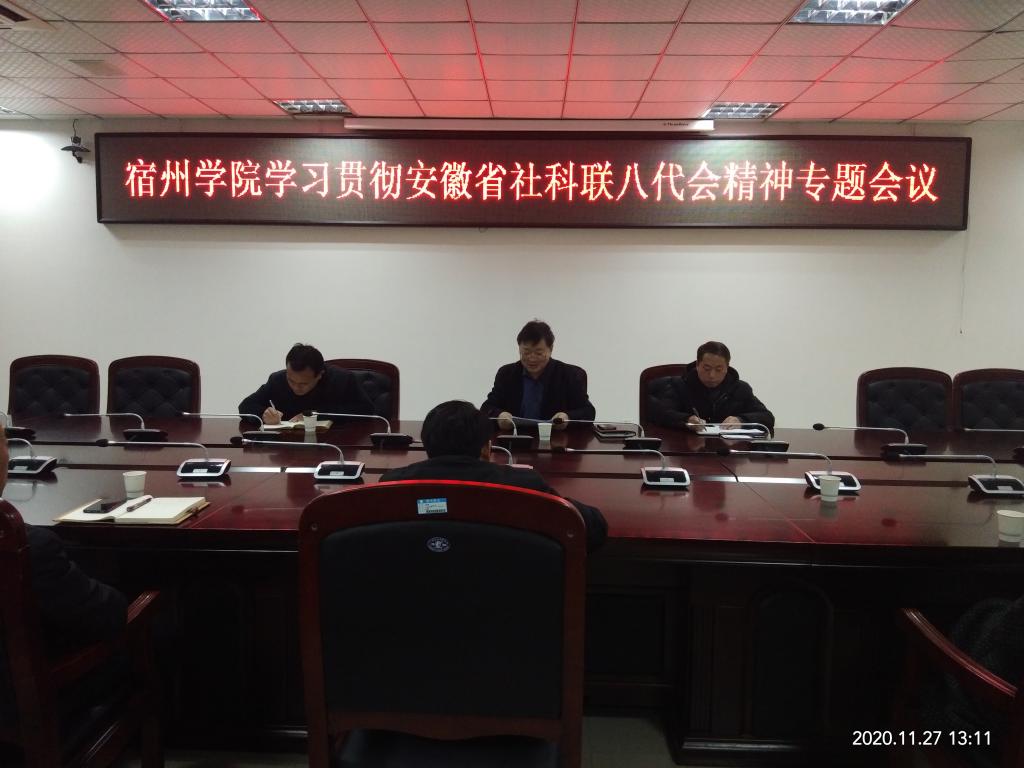11月27日,大赢家体育在逸夫楼第一会议室召开专题会议学习贯彻落实安徽省社会科学界联合会第八次代表大会精神,安徽省社会科学界联合会第八次代表大会代表、校党委委员、副校长张英彦,大赢家体育社科联委员代表,二级学院院长,教务处和科技处工作人员参加本次会议。会议由张英彦主持。