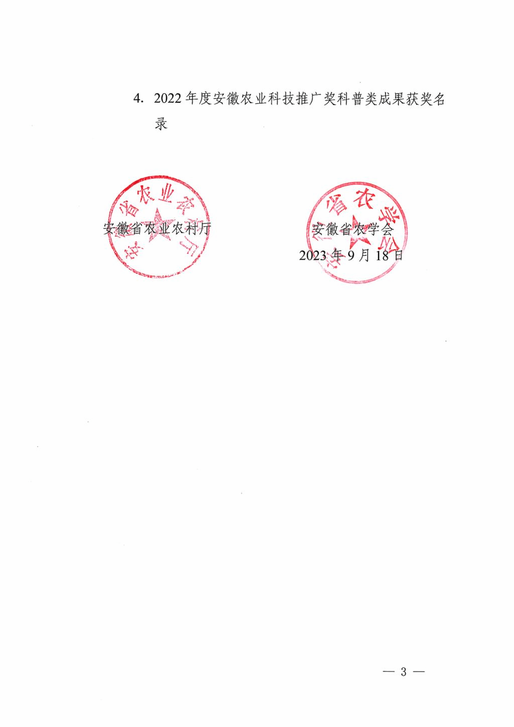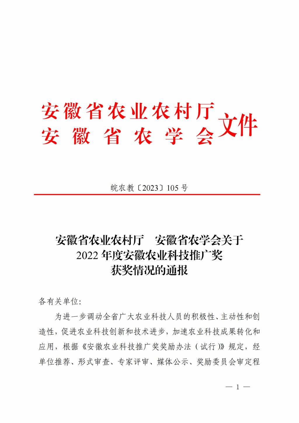 安徽农业科技进步推广奖是为调动全省广大农业科技人员的积极性、主动性和创造性,促进农业科技创新和技术进步,加速农业科技成果转化和应用面向全省农业行业(农业、畜牧、兽医、水产、农机、农产品加工、农业生态环保和农产品质量安全、绿色食品、农业废弃物资源化利用、农业信息化、乡村休闲旅游等)及其它与农业相关行业设置的奖项,奖励范围包括在农业科研和技术推广中取得对我省农业科技进步具有显著影响的科技成果。