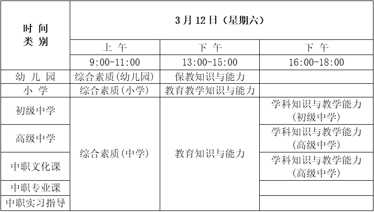 2022年上半年中小学教师资格考试(笔试)日程安排表