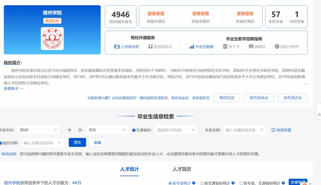 大赢家体育毕业生生源信息网现已聚合全校的生源数据,囊括了往届生、应届生、在校生的生源信息,依据地域、专业、生源地等多维度展现,为用人单位提供专属的生源信息检索工具!