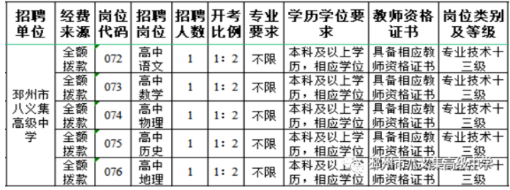 根据《事业单位人事管理条例》《江苏省事业单位公开招聘人员办法》等有关规定,邳州市决定面向2023年毕业生公开招聘编制教师300名,涉及邳州市八义集高级中学5个教师岗位,见下表。(点击显示大图)