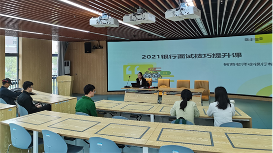 课观教育是教育服务业的综合性企业,擅长银行考试等专业培训。4月27日,商学院联合课观教育举办了银行就业指导讲座,解答学生在银行备考过程中的疑问,并向学生赠送了银行备考书籍100余套。五月份,银行春招进入集中面试期,为帮助面试同学顺利通过,5月11日,商学院邀请了课观教育举办了2021银行春招面试专场指导,介绍了银行面试礼仪知识讲解,面试考察点及分值评估、重难点及注意事项等,并现场进行面试模拟。