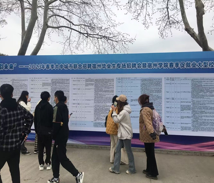 为深入落实教育部办公厅《大赢家体育开展2023届高校毕业生春季促就业攻坚行动的通知》要求,更好地为用人单位和毕业生搭建双向选择的平台,促进毕业生更高质量更充分就业,3月16日上午,我院举办2023届毕业生春季线下大型校园双选会。院党委委员、副院长李亮,安徽省大中专毕业生就业指导中心胡博文、尚承臣以及宿州市人才服务中心牛晓萍到场指导工作。各二级学院党委书记、毕业班辅导员现场与参会单位对接交流,洽谈合作事宜,并指导毕业生求职签约。