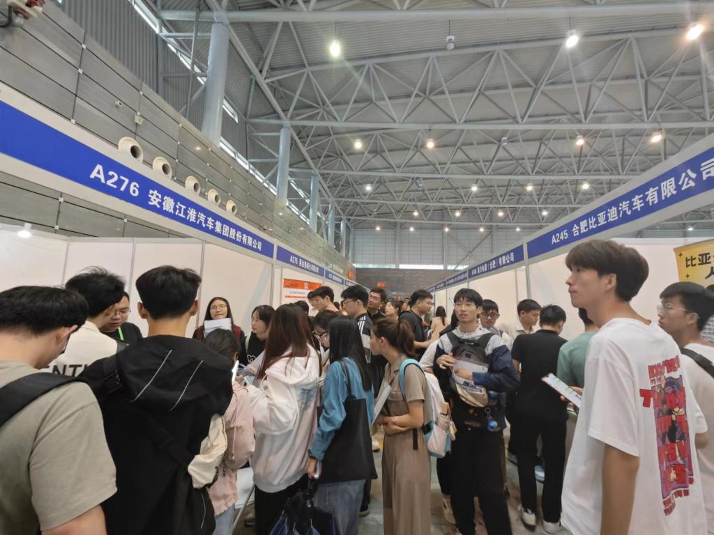 9月21日,由安徽省人社厅组织开展的“2023年世界制造业大会专场招聘会”活动在合肥滨湖国际会展中心举行,活动以“人才赋能 创新发展”为主题,旨在全面贯彻党的二十大精神,加快打造具有重要影响力的“三地一区”,让人力资源成为推动安徽省制造业高质量高速度发展的有力支撑。活动现场,有274家以制造业企业为主的用人单位进场招揽人才,提供较高质量岗位12000余个,涉及机械机电、材料、生产制造、生物制药、市场营销等多个专业领域。为进一步激发我校毕业生的求职动力,拓展毕业生的求职空间,获取更多的就业机会,我院组织98名师生前往合肥共同访企拓岗,参加本次招聘活动。