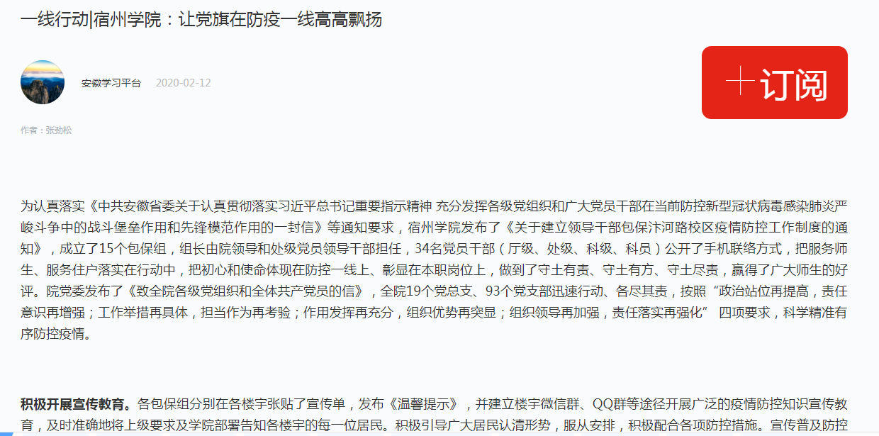 2月12日,《学习强国》以《大赢家体育:让党旗在防疫一线高高飘扬》为题,对我校广大党员干部在疫情防控工作中,当先锋,做表率,以多种方式开展疫情防控工作的消息进行了报道。正文:为认真落实《中共安徽省委大赢家体育认真贯彻落实习近平总书记重要指示精神 充分发挥各级党组织和广大党员干部在当前防控新型冠状病毒感染肺...