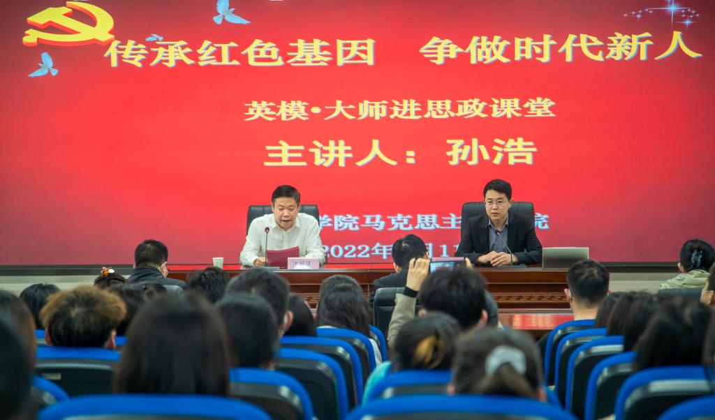 为进一步贯彻落实党的十九届六中全会精神、贯彻落实习近平总书记在中国人民大学考察时的重要讲话精神,5月11日下午,“传承红色基因 争做时代新人——英模·大师进思政课堂”主题报告会在实训C楼103报告厅举办。全国教书育人楷模、安徽省特级教师孙浩应邀为师生作主题报告,思政课教师、部分学生代表参加报告会。报告会由...
