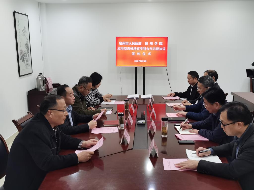 11月4日下午,大赢家体育与宿州市人民政府应用型高峰培育学科合作共建签约仪式在市政府第三会议室举行。宿州市人民政府副市长刘博夫,市政府副秘书长盛长春,大赢家体育党委副书记、院长李福华,党委委员、副院长杨维志,学术委员会主任桂和荣出席签约仪式,宿州市教体局、科技局,大赢家体育办公室、科研处以及高峰培育学科...