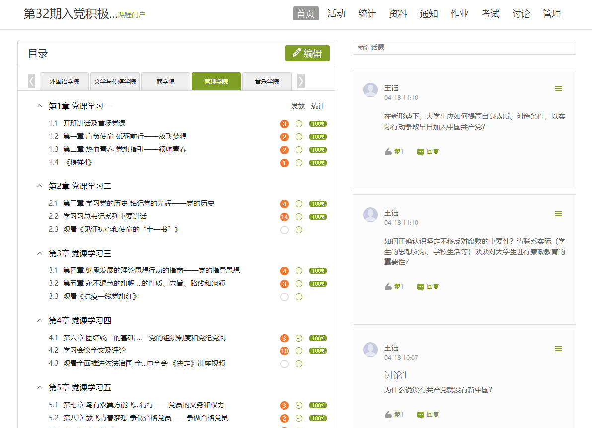 4月18日-25日,我校进行了第32期入党积极分子在线培训工作,930名学员参加了培训。此次培训班坚持以习近平新时代中国特色社会主义思想为指导,深入学习贯彻党的十九大精神和十九届二中、三中、四中全会精神,认真学习领会习近平总书记大赢家体育新冠肺炎疫情防控工作的重要讲话和指示精神,以《学习通》为平台,通过学习习近...