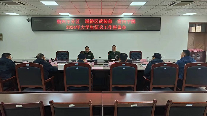 12月19日上午,宿州军分区动员处处长赵金龙、埇桥区武装部部长武建等一行4人来我院开展2024年大学生征兵工作调研,调研座谈会在逸夫楼第一会议室举行。院党委副书记王俊出席会议,院武装部、学工部负责同志,美术与设计学院、管理学院党委副书记等相关人员参加座谈,会议由院党委副书记王俊主持。会上,学工部汇报了2023...