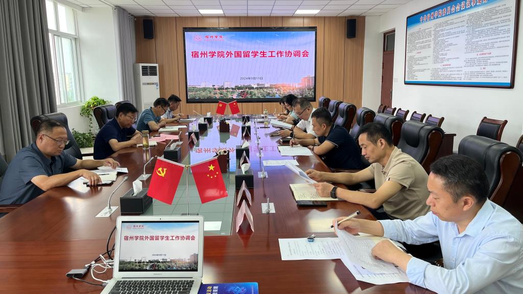 9月11日上午,我校外国留学生工作协调会在逸夫楼A506会议室召开,党委常委、副校长杨维志出席并主持会议,国际交流与合作处、教务处等部门主要负责人,商学院、管理学院等二级学院院长参加会议。会上,国合处处长安晓斌介绍了2024年录取学历留学生整体情况,提出学历留学生迎新和日常管理工作的任务分工建议,梳理了学历...