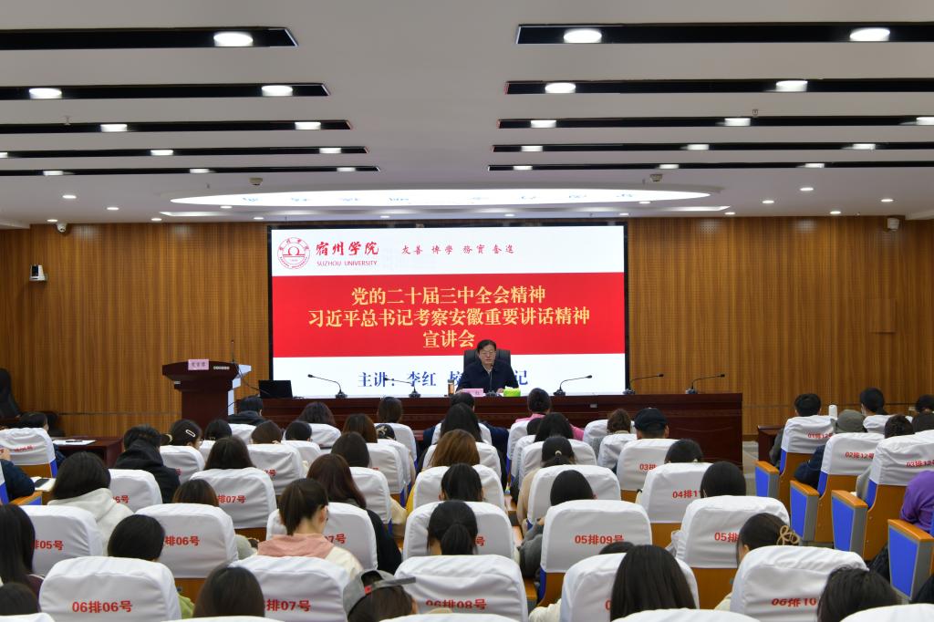 11月8日上午,校党委书记李红到商学院宣讲党的二十届三中全会精神和习近平总书记考察安徽重要讲话精神,商学院党委书记王淑霞主持报告会。李红从充分认识党的二十届三中全会召开的重大意义、深刻把握新时代全面深化改革的重大成就、准确理解进一步全面深化改革的总目标、深刻把握进一步全面深化改革的重大原则、全面准确...